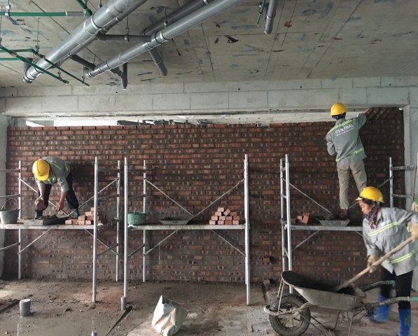 Hiện tại, dự án đang tiến hành thi công xây tường biên và tường trong toàn bộ 5 tòa: