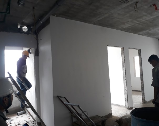 Đồng thời, dự án đang thi công trát tường ngoài đến 3-:-12